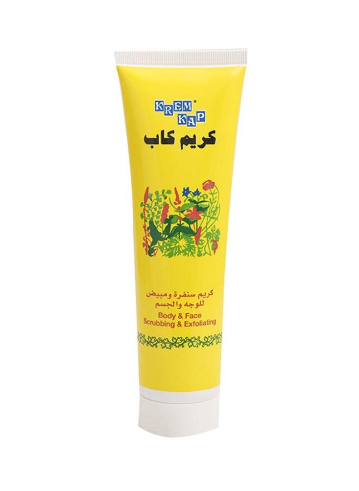 احصلي على بشرة ناعمة ومشرقة مع كريم سنفرة وتبييض الوجه والجسم Krem Kap بحجم 150 مل. هذا الكريم مصمم خصيصاً لتقديم عناية شاملة للبشرة، حيث يجمع بين خصائص التقشير الفعّال والتبييض، مما يساعدك على التخلص من الخلايا الميتة وتحقيق بشرة أكثر إشراقًا ونعومة.